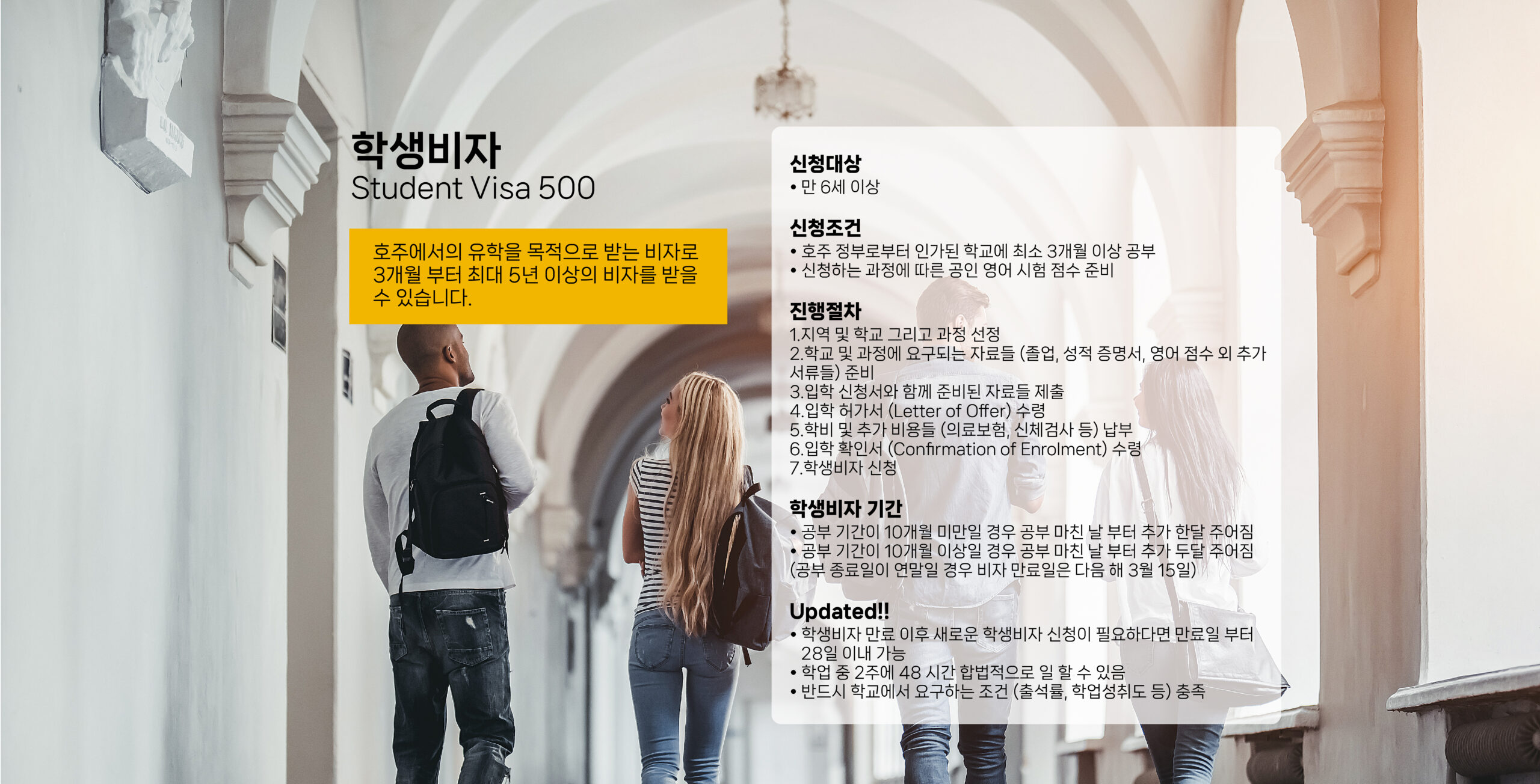 호주에서의 유학을 목적으로 받는 비자로 3개월 부터 최대 5년 이상의 비자를 받을 수 있습니다