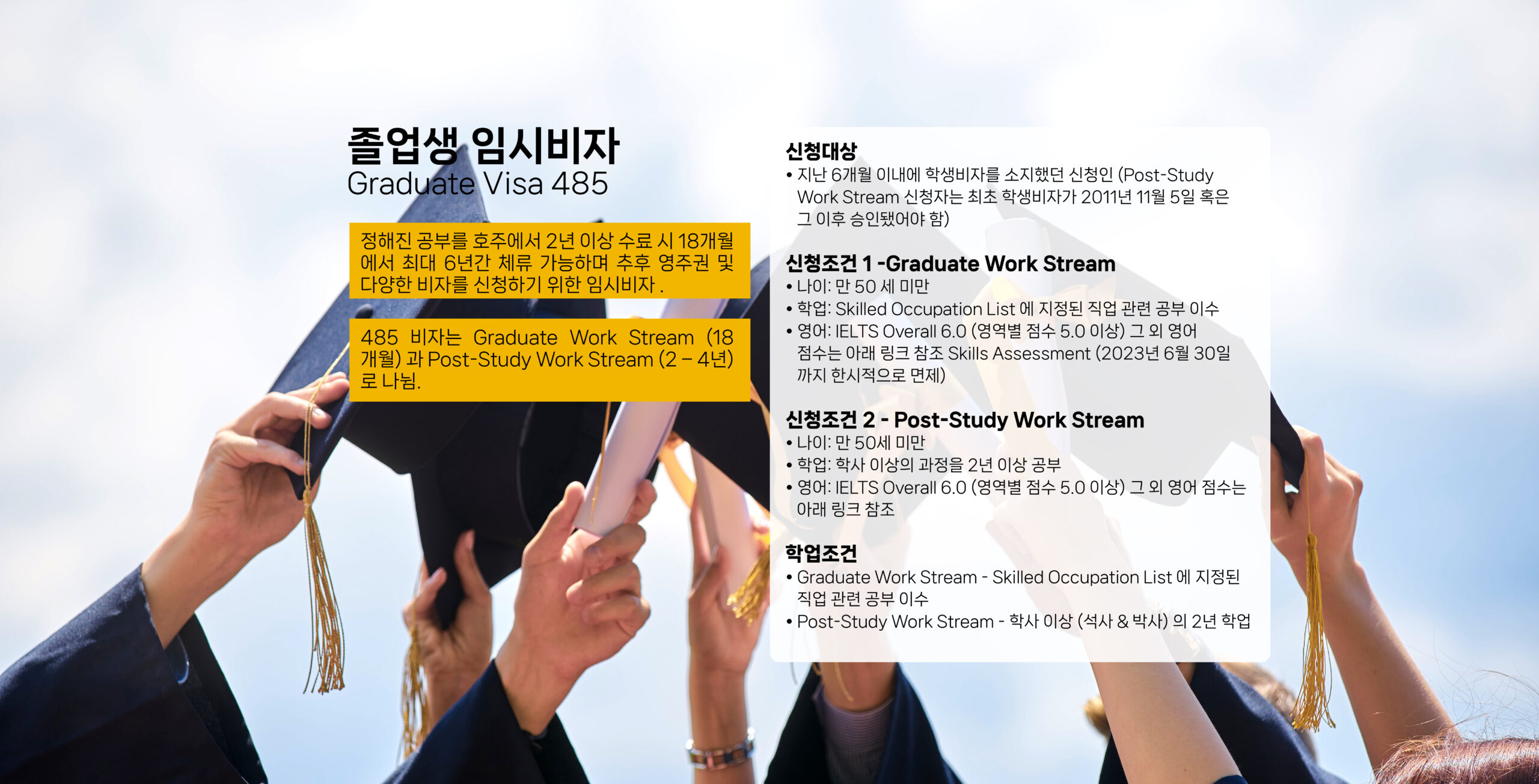 호주 정부로부터 인가된 학교에서 최소 3개월 이상 공부